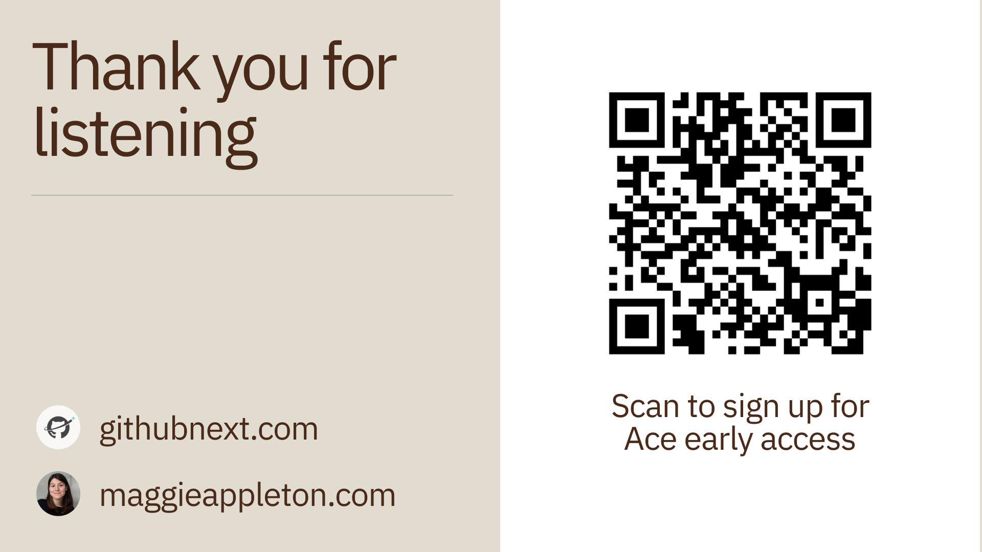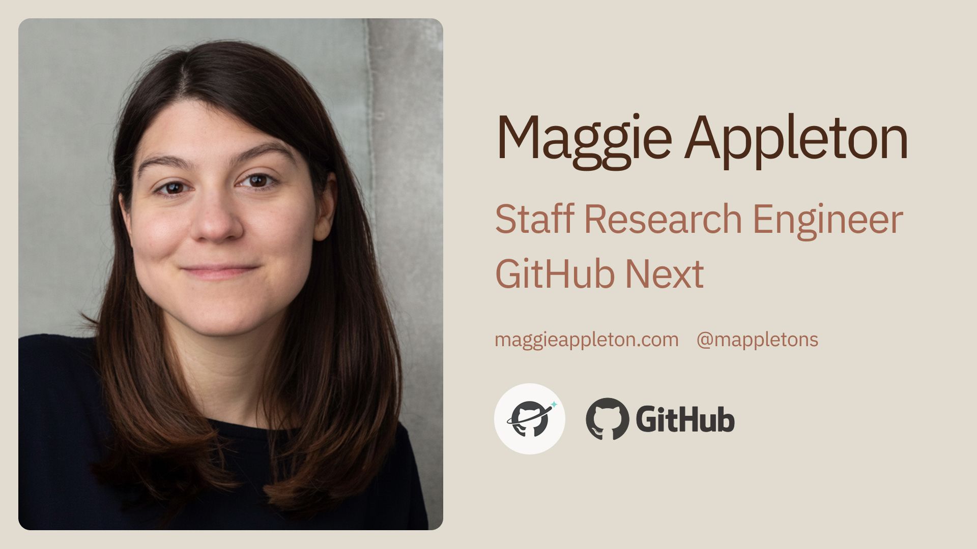 First, a quick intro. I’m Maggie and I’m a staff research engineer at GitHub Next. At least that’s my title, but I’m actually a designer. Or I was, back when that was still a separate thing to engineering.