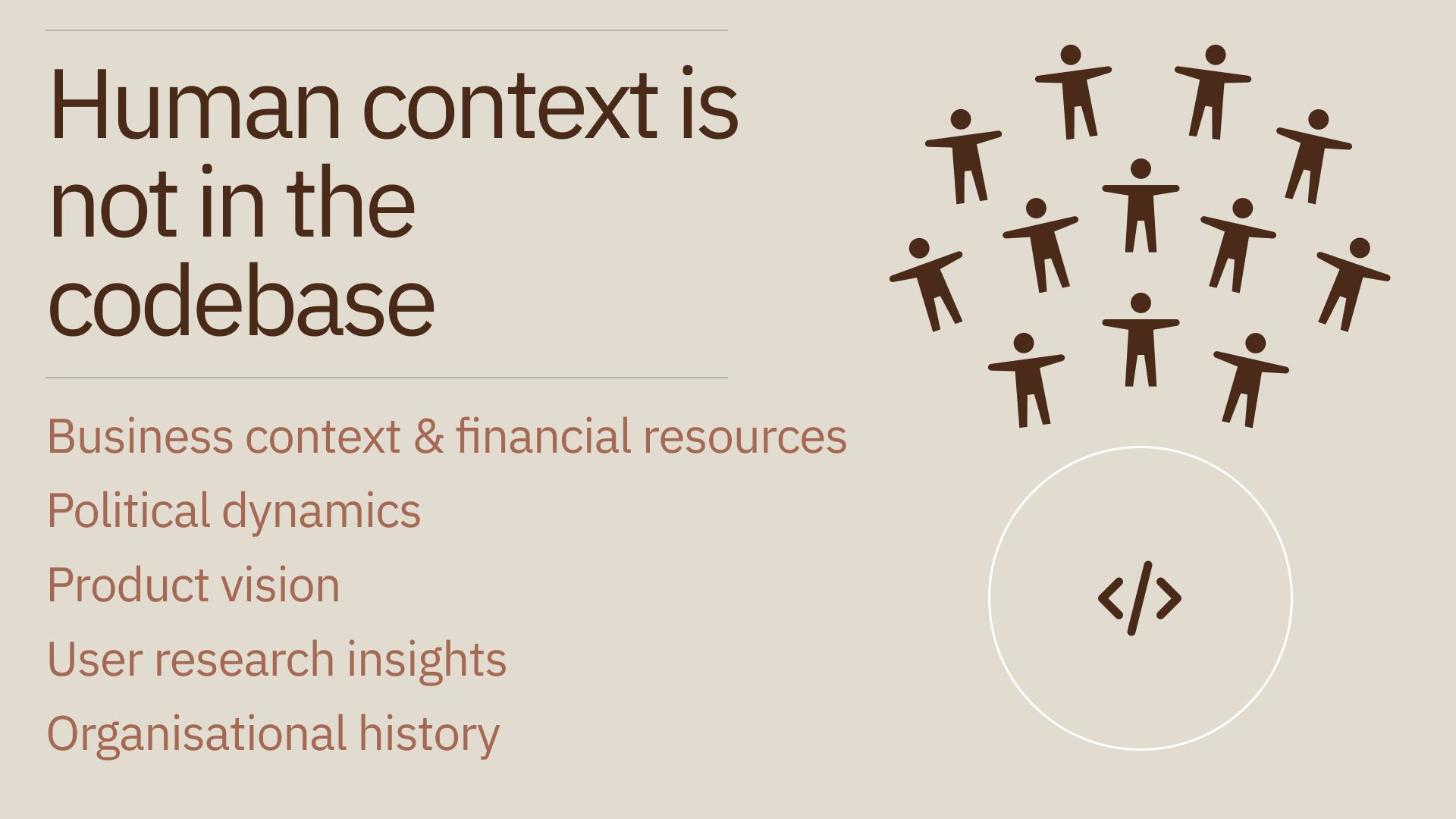 This is especially true because most of the context you need for alignment isn’t in the codebase.