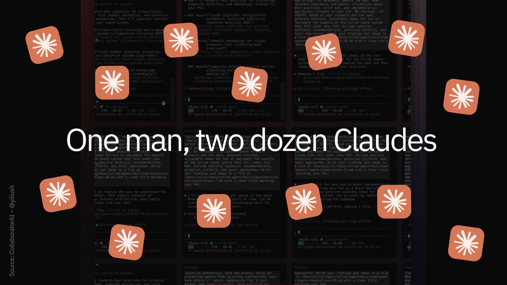 This is what many people think peak developer productivity looks like right now - a wall of terminal-based coding agents running in parallel on one person’s machine.